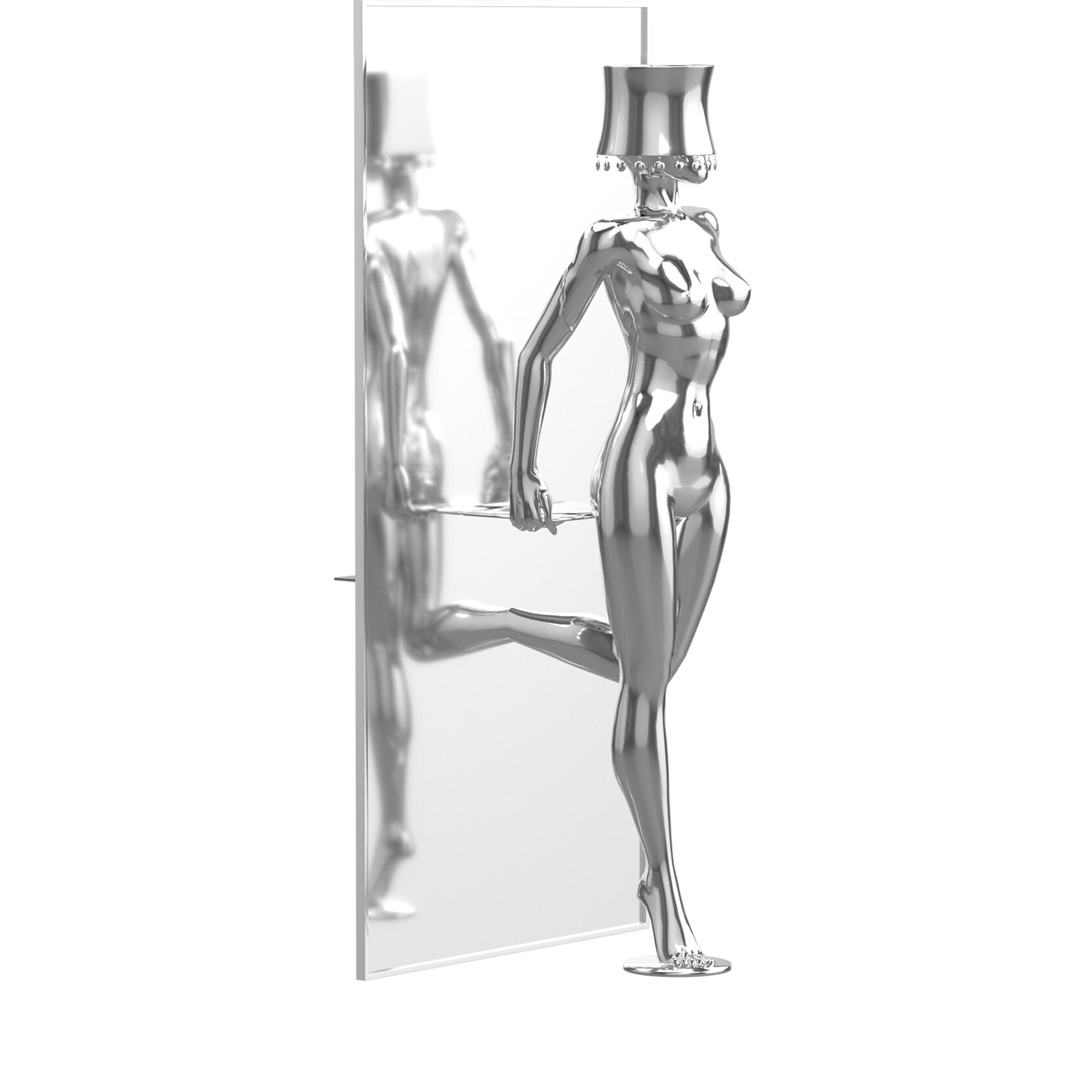Ускользающая — самая загадочная фигура коллекции, олицетворяющая легкость и игривость девушки, проходящей сквозь стекло. Женскую способность преодолевать стену, не разрушая её, демонстрирует этот элегантный светильник. Именно такую волшебную женщину хочется удержать сильнее всего.